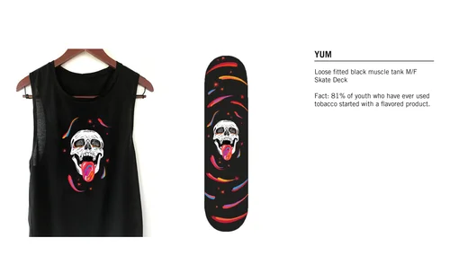 I have worked with Truth for the past three years to create brand merchandise that illustrates shocking facts about the tobacco industry. My challenge has been to develop bold but relevant ways to communicate these messages to teens and create designs that they will be proud to wear while spreading the #truth.
